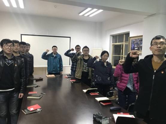 短暂的生活会进入尾声,张伟耀带领大家重誓入党誓词,共唱起《国际歌》,大家声音洪亮,眼神中闪烁着坚定与自信。2018年第一次组织生活会结束了,这也成为2018年硕7016党支部的新起点,新方向。