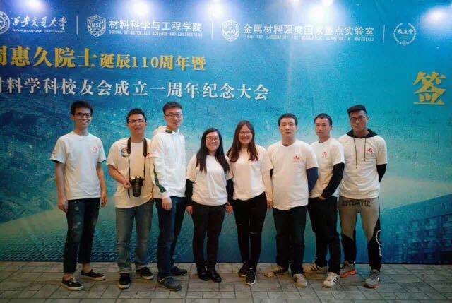 在大会前的幕后准备工作中,7018支部的成员积极配合老师工作,帮老师一起布置会场管理会场,一起贴上具有交大材料院特殊loga的瓶签,一起为校友们制作精美贴心的个人证件,一起为校友们装满那满是青春回忆的u盘。虽然辛苦,但大家都乐在其中,深有感触,并以能作为交大材料志愿者为荣。