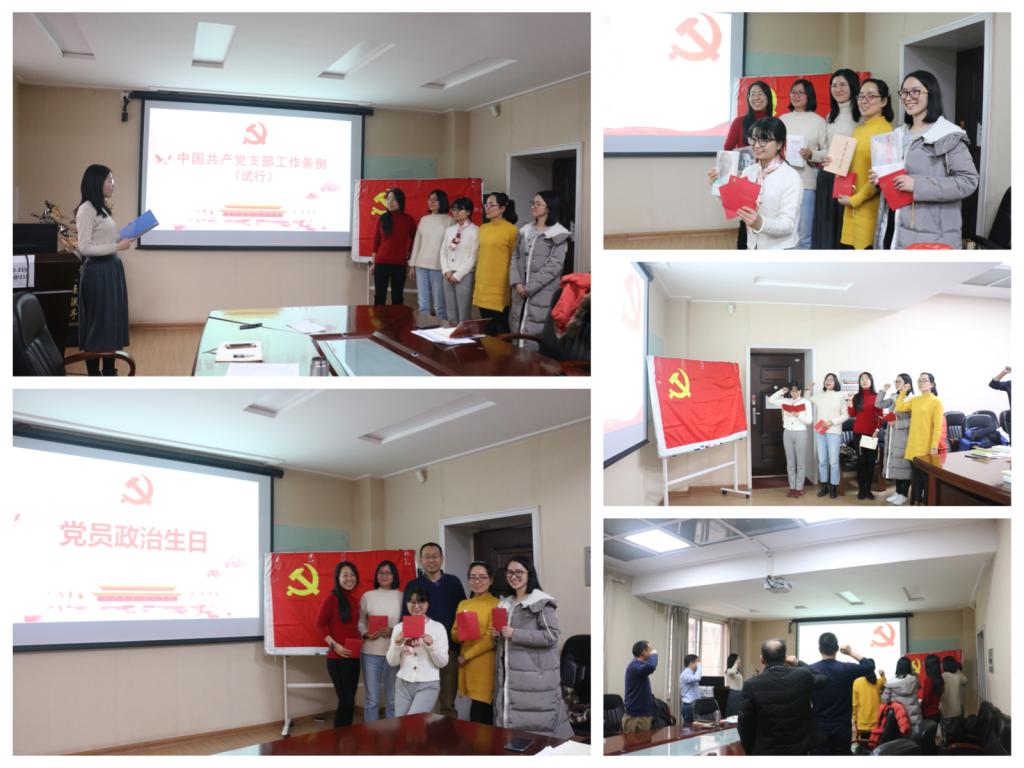 每一位党员都有两个生日,一个是自然生日,一个是政治生日。过好党员的政治生日,为进一步增强党员组织归属感,促进党员自我教育、自我管理、自我提升;贯彻落实“两学一做”学习教育活动,充分发挥党组织的战斗堡垒作用和广大党员的先锋模范作用,切实加强党的执政能力建设,始终保持党的先进性和纯洁性,激发党员的积极性、主动性和创造性。支部书记吴文媛为12月份入党的5位党员同志过了一个特别的政治生日,为大家准备了党员政治生日贺卡和种类丰富的理论书籍,唤醒入党初心,牢记党员使命,加强理论学习,向时代榜样看齐,引导党员在工作和生活中时刻以“四讲四有”标准,严格要求自己,立足本职岗位当标杆、做贡献。