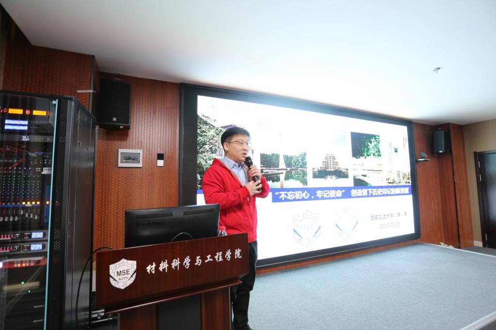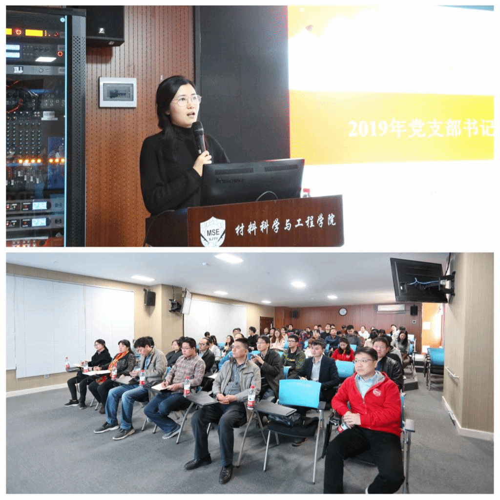 党委副书记魏炜,以“不忘初心、牢记使命,创造留下历史印记的新贡献”为主题,以高校的党建是什么、怎么做为切入点,从基层党建现状、思想交大、双院制育人、创新港等十个方面详细讲述了学院党建工作。他指出党支部书记、支委等要发挥带头作用,积极围绕实现材料学科跨越式发展、入驻创新港等核心工作,用习近平新时代中国特色社会主义思想铸魂育人,贯彻落实立德树人根本任务,以“四种文化”、“四面旗帜”为引领,奋力奔跑,为学校腾飞贡献材料人的力量和智慧,创造带有一品探花