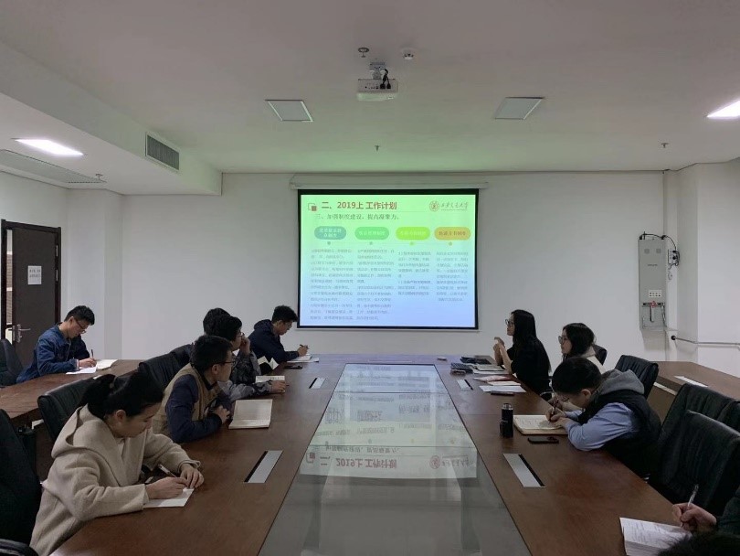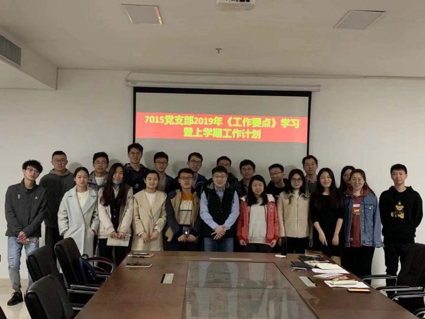 硕7015党支部于仲英楼A508会议室召开7015党支部2019年《工作要点》学习暨上学期工作计划会议。会议由支部书记庄白妞同志主持,与会人员包括支部党员、积极分子和班级群众共18人。本次会议特别邀请了材料学院分党委副书记魏炜老师与会指导。