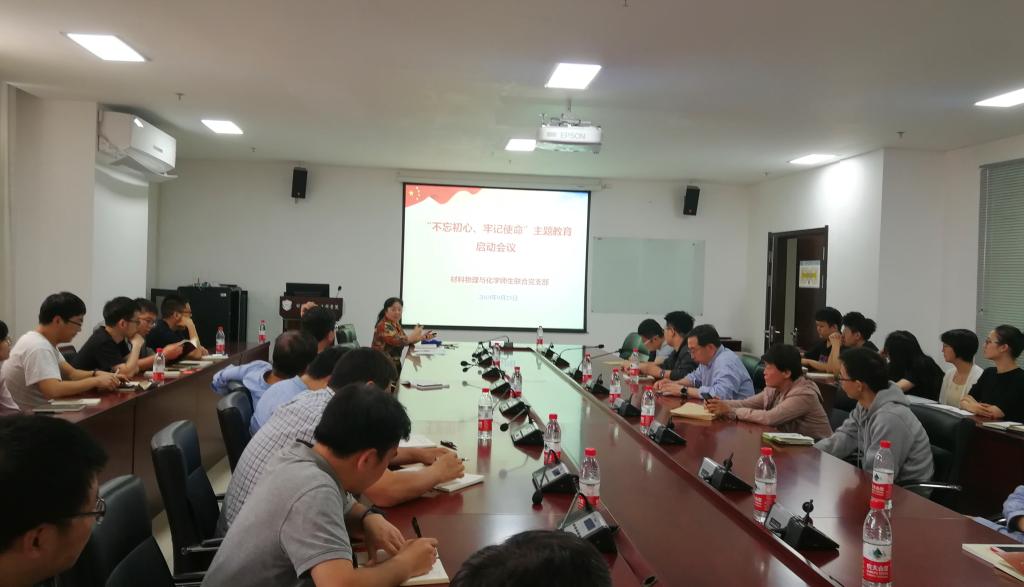 材料物理与化学师生联合党支部在学院第三会议室召开了“不忘初心、牢记使命”主题教育启动支部扩大会议,党支部书记宋月贤主持动员大会,材料物理与化学系全体老师和材料物理与化学师生联合党支部全体党员参加。