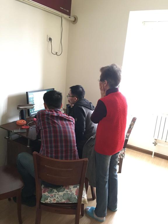 硕8016+8017党支部的两名党员关博远、王以强及积极分子庞杰拜访西迁老教授谈育煦老师,并帮助其解决了家中电脑等电子设备使用中出现的问题。