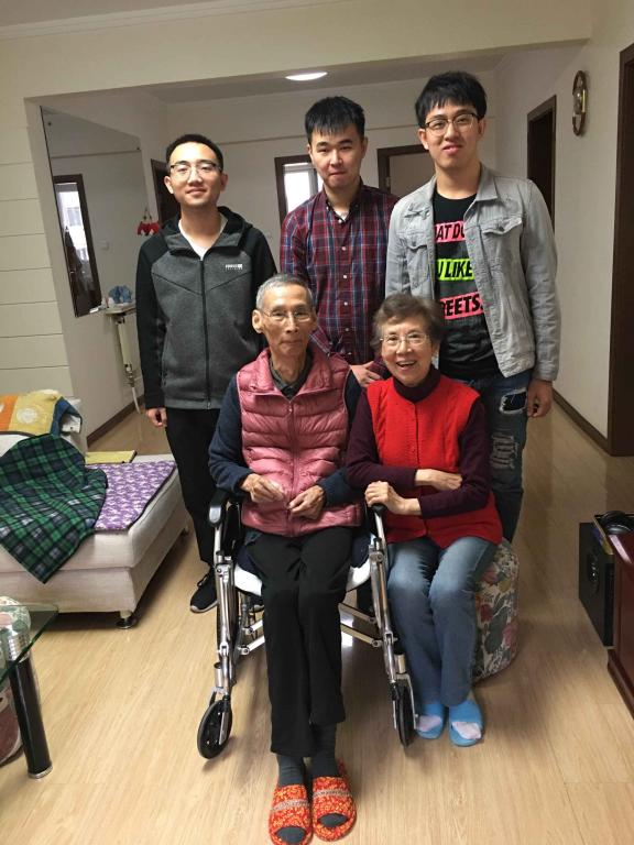 最后,三名同志与二位老师合影留念,互相添加微信好友,方便之后常去看望二位老师,如果家中的电子设备再出现类似的问题,或者二位老师有什么需求,党支部成员还会再去拜访。