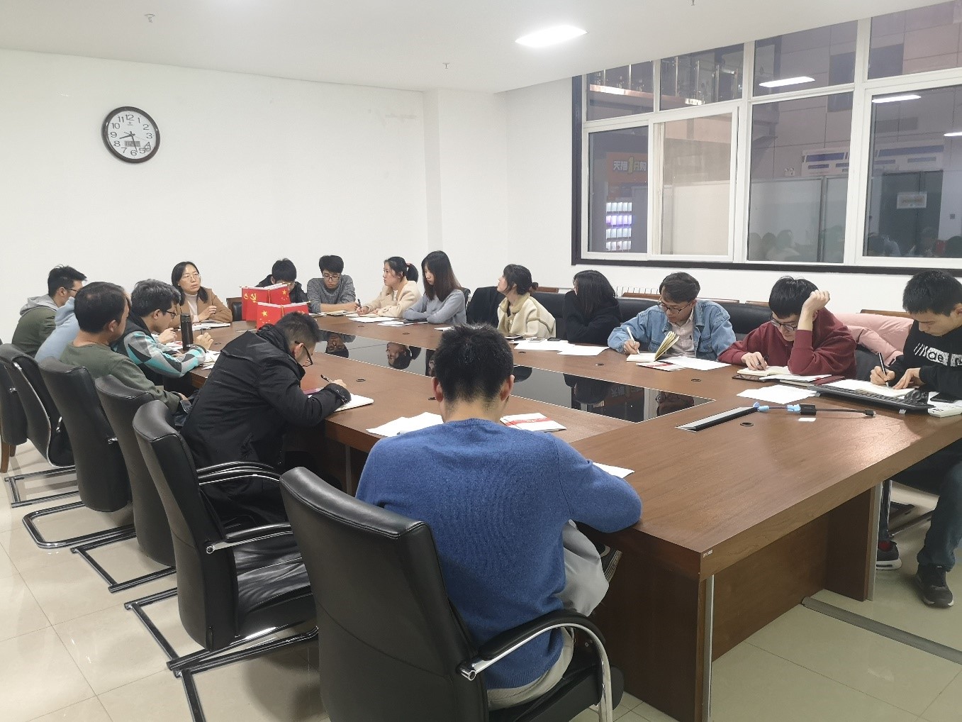 第四会议室召开支部总结大会暨民主评议会。会议由支部书记王普强同志主持,支部共16人参加。本次会议特别邀请了孙巧艳老师与会指导。
