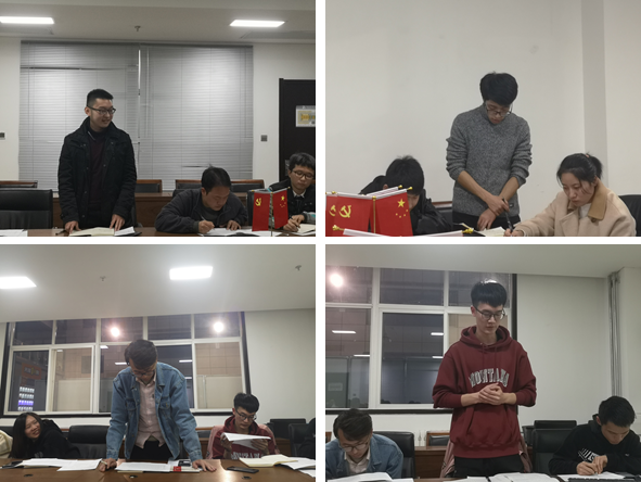 会议第一部分,王普强同志代表支委会向大家总结了过去一学年的支部工作,分别从支部架构、支委工作、党员工作、支部制度以及工作总结及计划进行述职阐述,并着重介绍了本学年支部所举办并参与的主题党日活动、支部党员发展工作、外出活动、7+1成长手册工作内容的实施以及党建学习平台、支部宣传与推广工作。在活动展示环节,王普强向大家展示并着重回顾了工作要点专题学习会、学院植树活动、陕博参观外出活动、纪念五四运动100周年主题观影活动、西迁纪念馆参观活动等,带领大家共同回顾了支部在过去一年所经历的点点滴滴。
