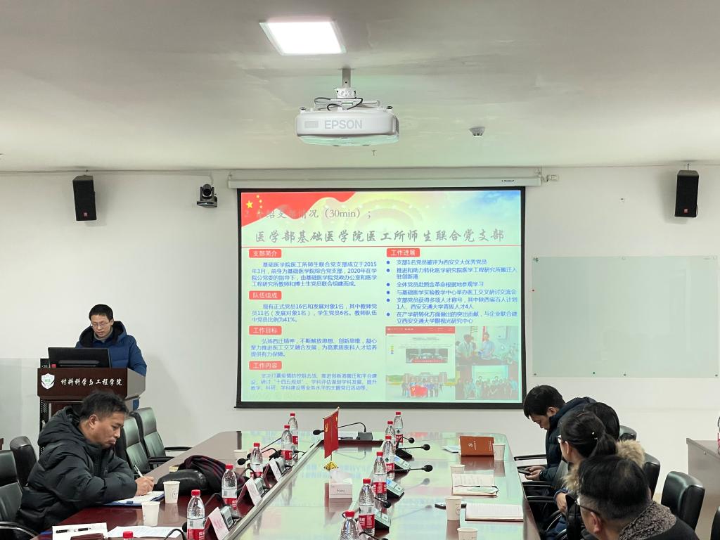 会议伊始,两个党支部从党建工作和业务工作两方面介绍了各自支部的基本情况。表面党支部书记张兰从党支部组成、工作目标与志愿服务等方面全方位展示了支部在弘扬新时代劳模精神、传承西迁精神与开展特色文化建设中取得的成就,汇报了表面研究室近年来在面向航空航天、生物医用金属、功能薄膜器件等国家重大需求和国民经济主战场领域取得的新突破、新成果和新贡献。医工所党支部书记吴春生回顾了医工所在低谷中奋斗、在困难中前行的历史沿革,指出医工交叉融合发展是趋势,要促进生物医学材料等交叉学科的建设和发展,在多学科交叉的背景下探索新的创新点和培育新的发展方向。