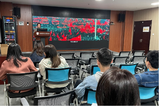 活动伊始,梁梦妍同学为大家详细介绍了“四史”的相关知识:“四史”即为党史、新中国史、改革开放史和社会主义发展史。党史是中国共产党的领导不断走向成熟的实践史;新中国史是中国共产党推进建设新中国的实践史;改革开放史是中国共产党推进社会主义制度自我完善和发展的实践史;社会主义发展史则表明中国共产党是引领世界社会主义发展的重要政治力量。总而言之,“四史”讲的就是中国共产党为人民谋幸福、为民族谋复兴、为世界谋大同的实践史。
