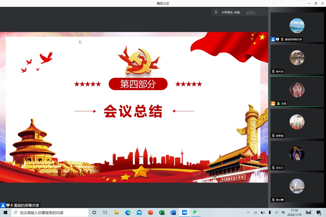 会议最后,党支部书记孟瑞同志做了相关总结:“我们的党史学习不应该只局限于组织生活的内容,更应该贯穿于日常。同时也要时刻保持警醒,面对网络上的消息,不可头脑发热,逞一时之快。身为党员,要始终坚定自己的政治站位,做好自己的科研与学习,争做“西迁精神”新传人。”