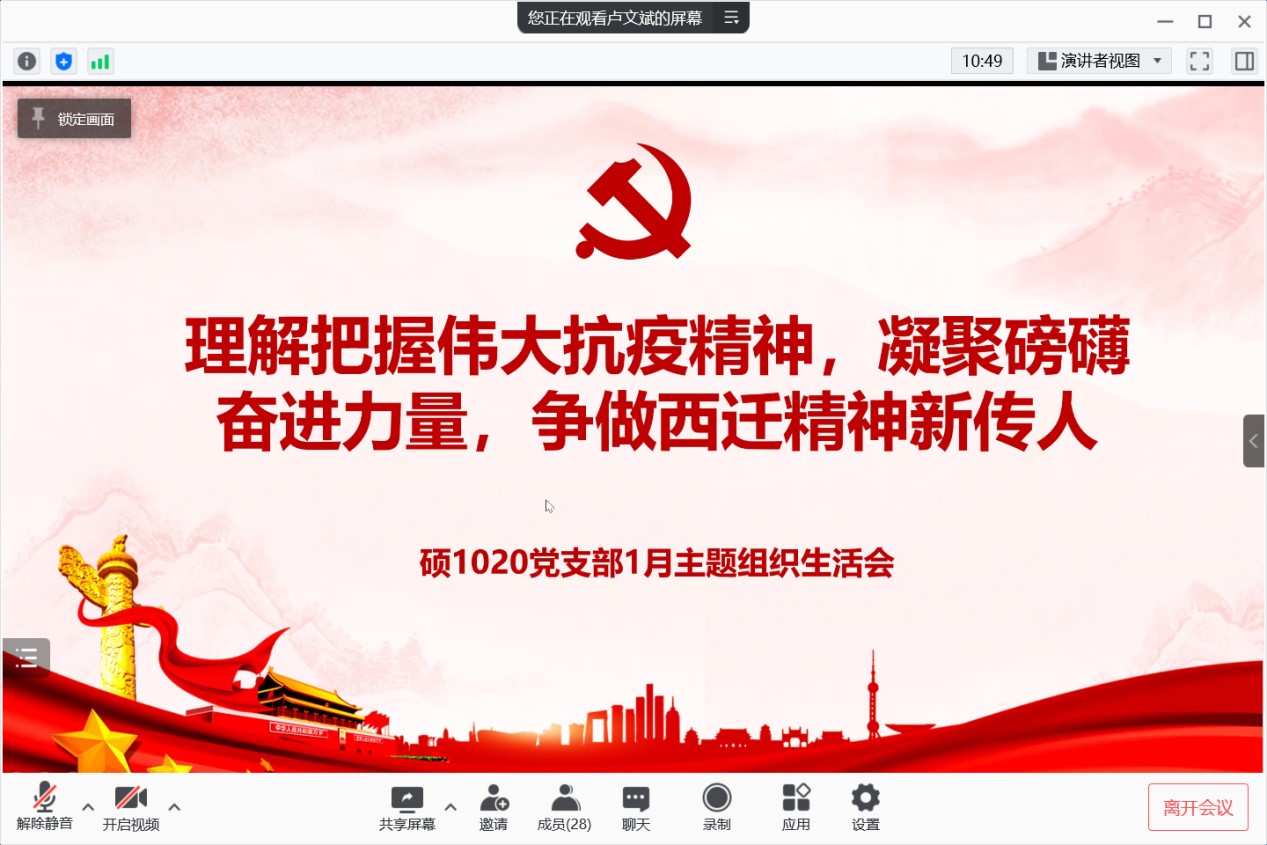 硕1020党支部召开“理解把握伟大抗疫精神,凝聚磅礴奋进力量,争做西迁精神新传人”主题组织生活会议。支部全体成员参加会议,会议由党支部书记卢文斌主持。一品探花