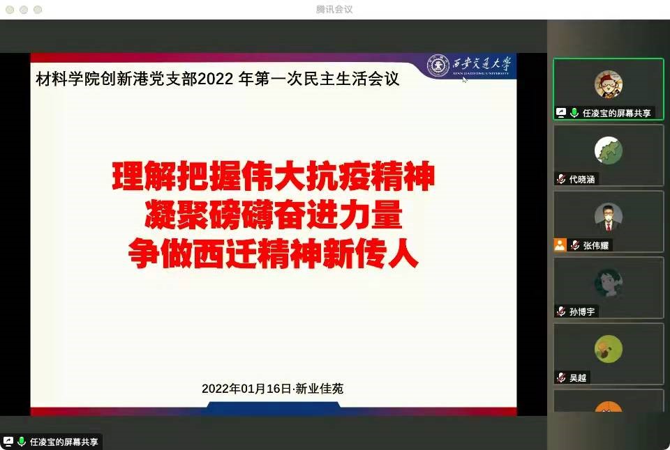 创新港党支部于2022年1月16日召开了“理解把握伟大抗精神、凝聚磅礴奋进力量争做西迁精神新传人”为主题的线上组织生活会议。会议由支部书记张伟耀同志主持,创新港党支部成员悉数参加。一品探花