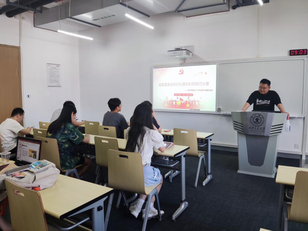 硕1019党支部开展了主题为“实验室安全知识科普和科研技巧分享”的组织生活,党支部党员和积极分子共计16人参加,会议由支部书记郑华申主持。