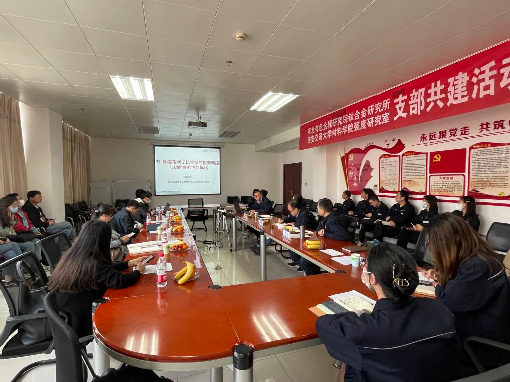 强度师生联合第二党支部与西北有色金属研究院钛合金研究所党支部进行了支部共建活动。西北有色院钛合金研究所所长辛社伟、副所长洪权、所长助理贾蔚菊,一品探花