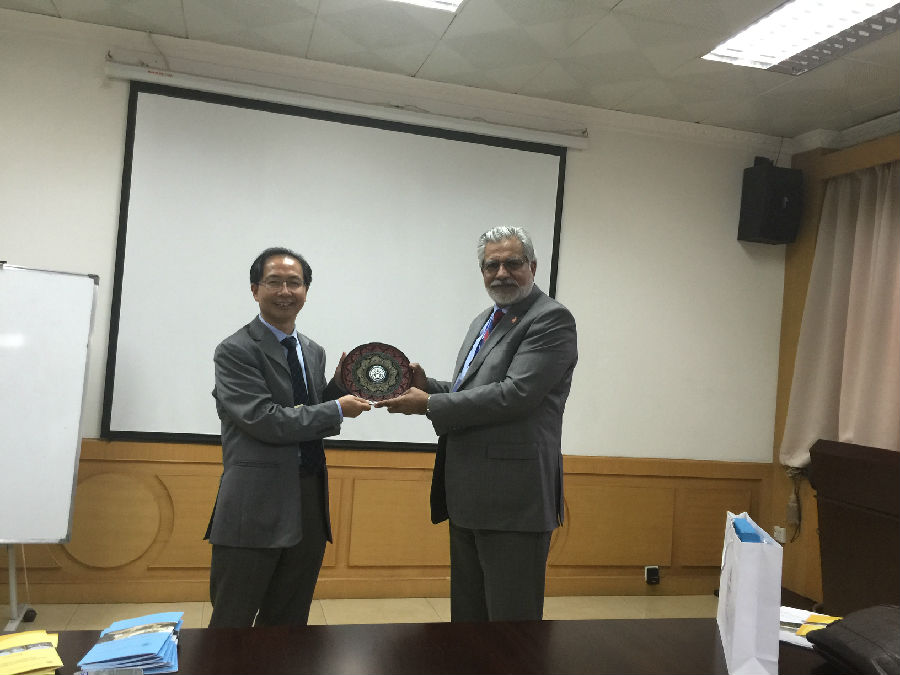 的热情接待表示感谢,并介绍了国立科技大学(NUST),该校成立于1991年,是一个比较“年轻”的高校,但已经成为巴基斯坦最好的综合性大学,入选了全球500强大学。学校拥有约1千1百名教师和1万5千名学生,开设有设计、建筑、能源、计算机和商学等学科。能源是当前学校重点发展学科,每年政府投入约2千万美金进行重点建设。学校以教学和科研为主,同时,特别注重对学生进行企业家精神和社会服务精神的培养。每四年学制中举行一次为期两周的义务服务活动,该校被评为最佳社会服务大学。