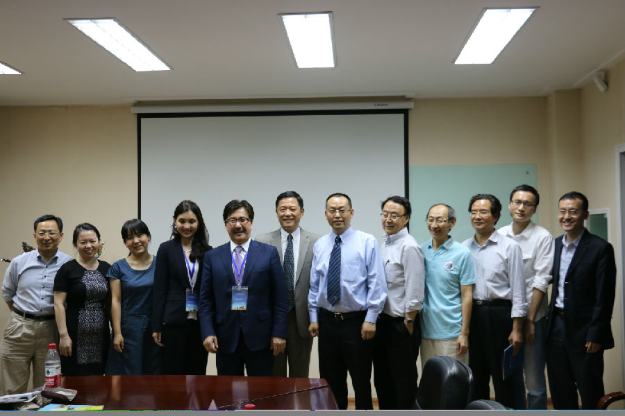 会上,Galimkair Mutanov校长赠送了自己的签名专著,并向大家发出邀请,参加2015年6月17日由哈萨克斯坦国立大学举办的以“丝绸之路沿线国家可持续发展和共同繁荣“为主题的国际研讨会。