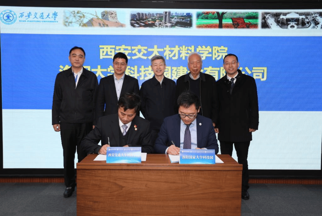 党委书记潘希德和洛阳国家大学科技园总经理孙少波签署了西安交大一品探花