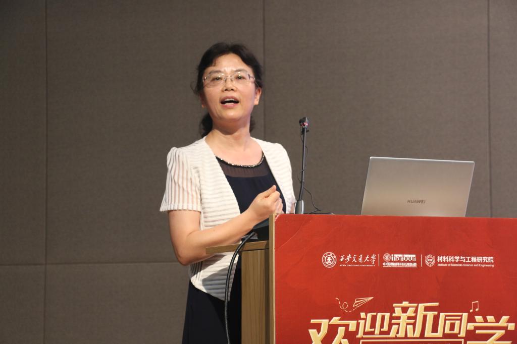 王红洁副院长从学院及专业概况、研究生毕业条件和研究生期间应该注意的事项三个方面做详细介绍。她讲到,创新港是一片能出大成果、能干大事业的神奇地方,希望大家珍惜在交大学习的时光,除了搞好科外,还应该锻炼提升综合素养,真正做一名勇于拼搏开拓、积极主动承担公共事务、脚踏实地、团结互助和诚实守信的材料人、交大人。