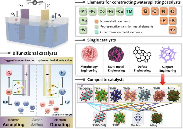 针对当前实现可再生能源系统的迫切需求,研究团队总结了近年来非贵金属基全解水双功能电催化剂的研究进展,涵盖了金属和合金,金属氧化物/氢氧化物、金属硫系化物、金属磷化物、金属硼化物、金属氮化物、金属碳化物和非金属碳材等催化剂材料的设计、制备和全解水性能。系统讨论了包括形貌工程、多金属工程、缺陷工程、基底工程和复合体系构筑等多种双功能催化剂优化策略,为非贵金属基全解水电催化剂设计和性能提升提供了重要理论参考。研究综述以“Material libraries for electrocatalytic overall water splitting”为题在国际知名期刊Coordination Chemistry Reviews(IF=22.315)在线发表(//doi.org/10.1016/j.ccr.2021.214049