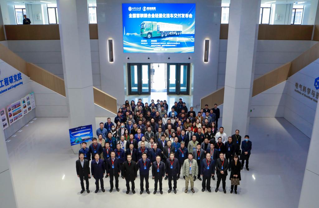 联合研发中心经过6个省份15家单位的大力协作,历时500余天最终成功研制了全国首辆镁合金轻量化挂车。单车镁合金用量超过800公斤,最大单体镁合金制件尺寸13米,相比原钢制方案综合减重近1吨,可显著提升公路货运经济效能,有望培育千亿级轻量化专用车市场!