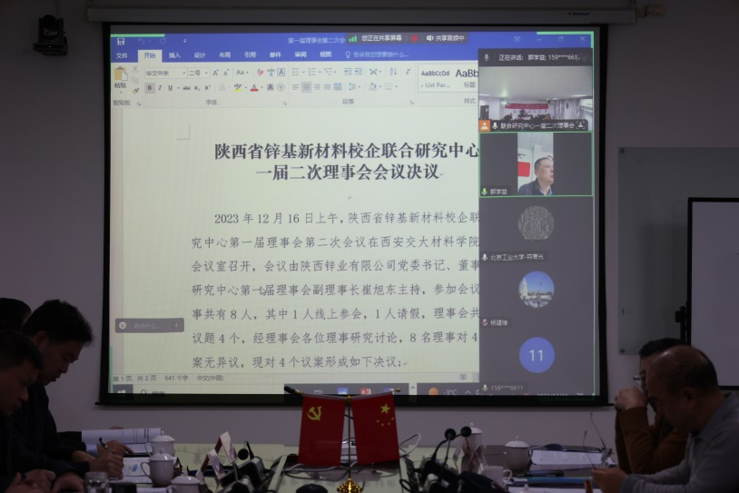 2023年12月16日上午,陕西省“四主体一联合”锌基新材料校企联合研究中心(以下简称:研究中心)一届二次理事会暨技术委员会在一品探花
