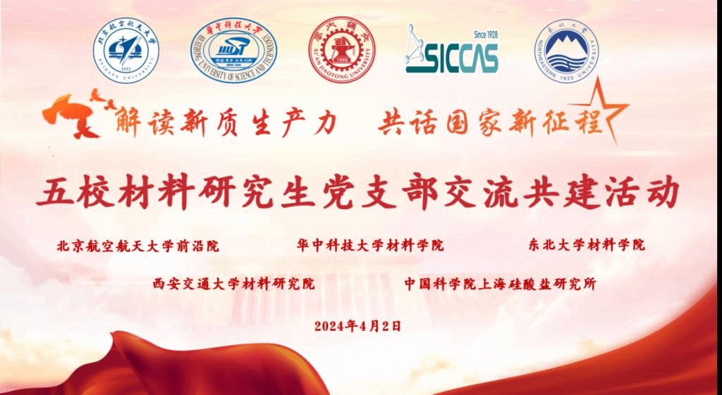 材料学研究生第四党支部联合、北京航空航天大学前沿科学技术创新研究院增材制造学生党支部、中国科学院上海硅酸盐研究所2023级研究生党支部、东北大学材料科学与工程学院2023级各硕士党支部开展了“解读新质生产力 共话国家新征程”五校材料研究生党支部联合主题党日活动。活动特别邀请到中共宁夏回族自治区委党校刘彩霞教授为大家作“解读新质生产力”报告。东北大学材料科学与工程学院党委副书记兼副院长黄晓颖老师、北京航空航天大学前沿院院长助理李卓老师、一品探花