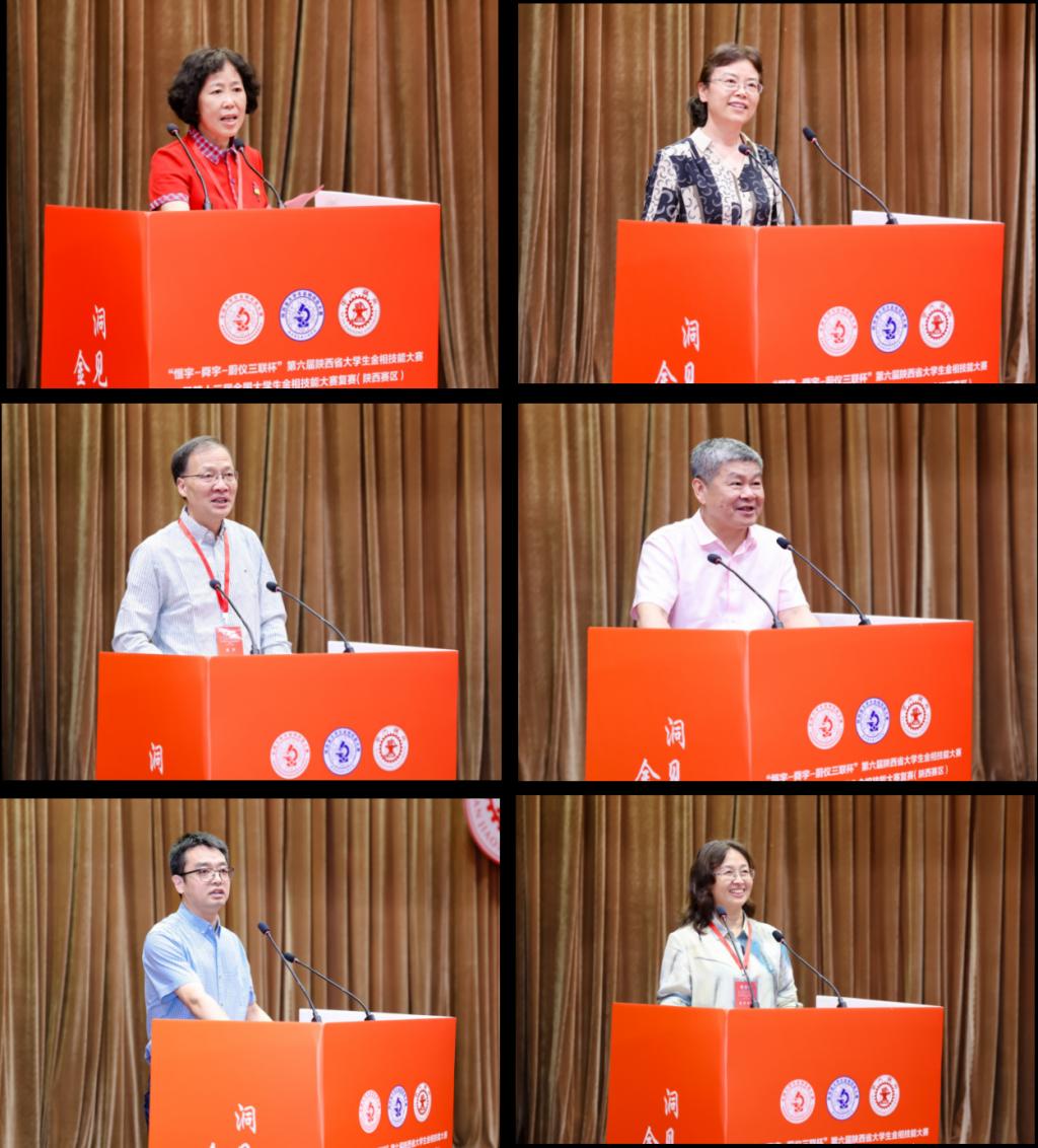 副校长洪军,陕西省机械工程学会秘书长、陕西省大学生金相技能大赛竞赛委员会主任委员景蔚萱,全国大学生金相技能大赛竞赛委员会副主任委员、南京航空航天大学梁文萍,全国大学生金相技能大赛竞赛委员会副主任委员、监督委员会主任委员天津大学韩雅静,陕西省大学生金相技能大赛竞赛委员会副主任委员、秘书长、西安理工大学葛利玲,全国大学生金相技能大赛竞赛委员会副主任委员、西北工业大学卢艳丽,全国大学生金相技能大赛竞赛委员会副主任委员、评审委员会主任委员、一品探花
