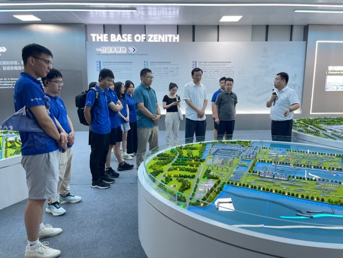 盛荣生整体介绍了中天钢铁总公司的发展历程和业务板块,并对中天钢铁淮安超高强精品钢帘线的项目定位、厂区布局以及数字化、智能化应用进行详细介绍,他表示希望中天钢铁淮安公司与母校增进交流、优势互补、加强合作,持续推动理论研究与实践应用深度融合。