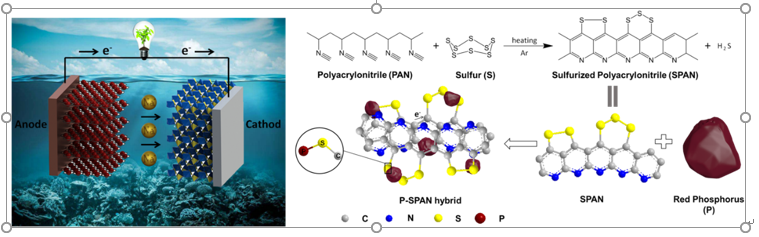 近日,金属材料强度国家重点实验室宋江选教授团队发展了一种新型高比容、长寿命钠离子电池负极材料-红磷/硫化聚丙烯腈。该材料具有很高的放电容量(~1300mAh/g)和优异的循环性能(100周容量保持率大于91%)。在该工作中,团队成员设计并制备了一种新型的功能化导电聚合物-硫化聚丙烯腈作为导电基体,不同于普通的碳导电骨架,该导电聚合物富含C-S-S-官能团,可通过简单的球磨方式与红磷形成化学键合(C-S-P)。该化学键的存在能很好地解决在大体积膨胀下活性物质与导电基体脱离的科学难题,极大的提高电极材料的电导率,抑制磷在循环中的体积膨胀,并使得电极材料上形成稳定的固体电解质界面,从而同时改善电极材料的循环稳定性和库伦效率。这项工作所提出的解决策略为高比容钠离子电池负极材料的制备提供了新的思路。
