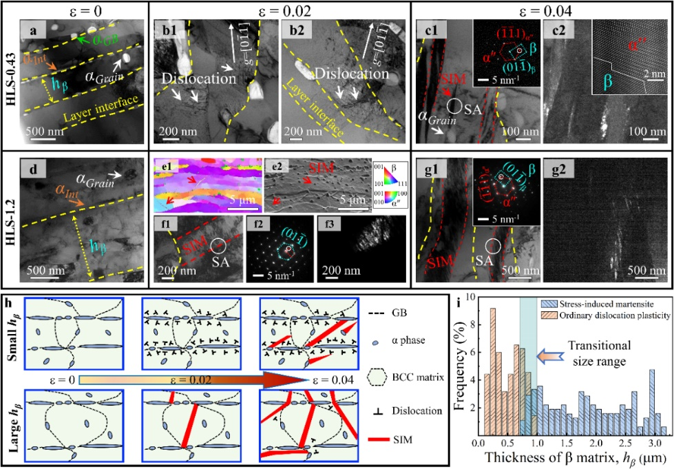 图1.异质叠层Ti-1Al-8.5Mo-2.8Cr-2.7Zr合金的变形机制演化与临界尺寸效应