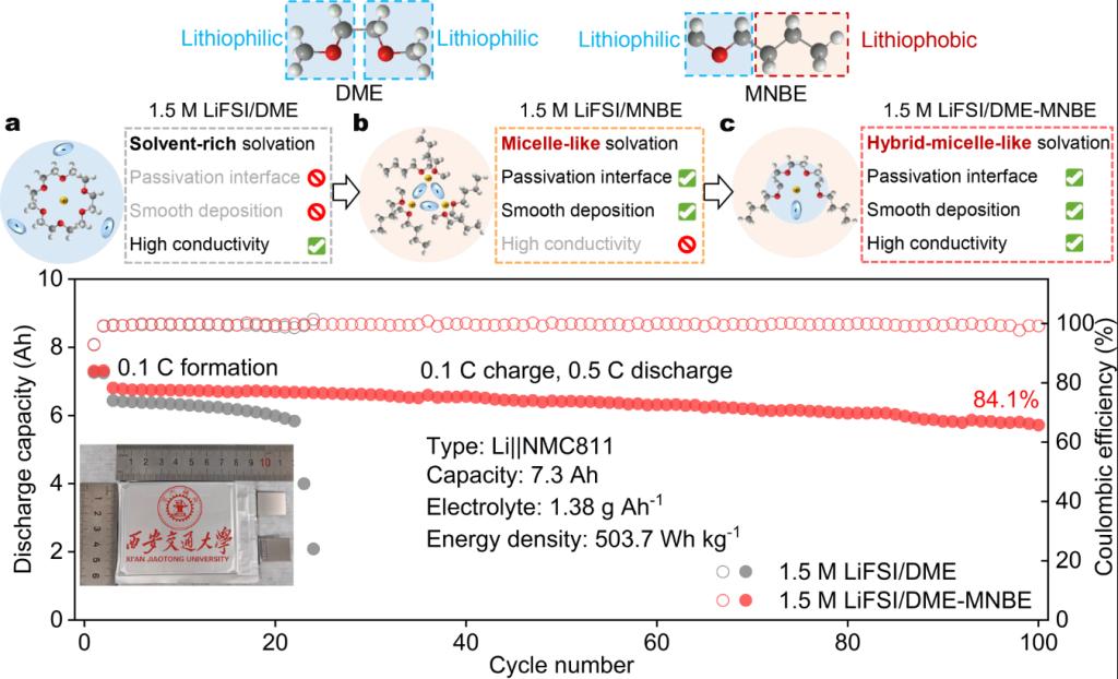 博士生赵培钰(已毕业)和张艳华为本文共同第一作者;以《用于超高能量密度锂金属电池的无氟类胶束状溶剂化电解质》(Non-fluorinated Electrolytes with Micelle-like Solvation for Ultrahigh Energy Density Lithium Metal Batteries) 为题发表在国际权威期刊《化学》(Chem) 上,一品探花