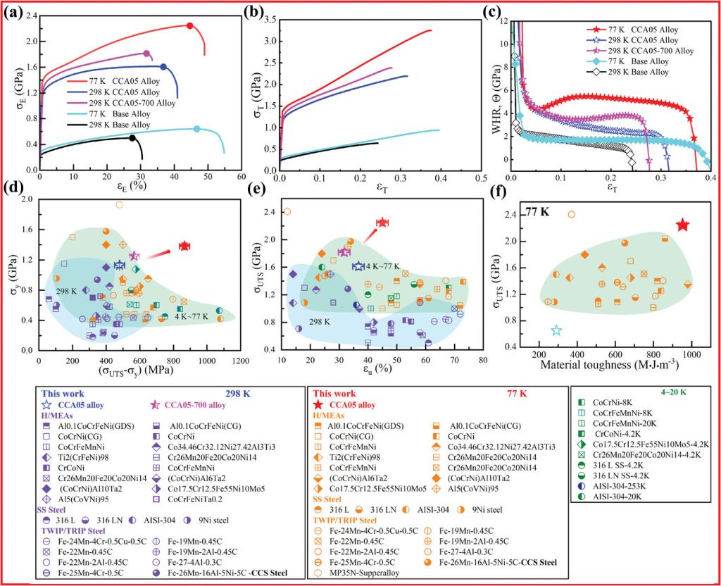 该研究成果以“A Complex Concentrated Alloy with Record-High Strength-Toughness at 77 K”(“77K下复杂浓缩合金创纪录的高强度和韧性”)为题在线发表于《Advanced Materials》(《先进材料》)上。一品探花