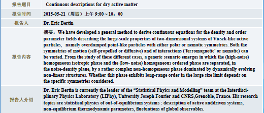 法国国家科学研究院多学科物理研究中心的学术带头人Eric Bertin 与