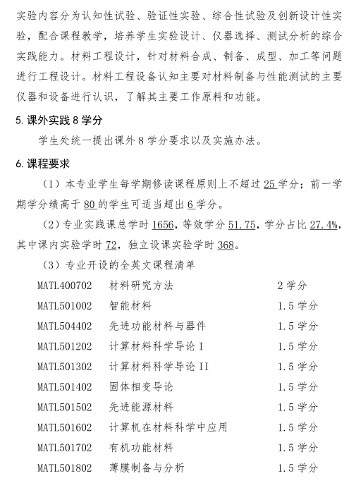 (5)全球意识与终身学习 具备全球视野和竞争意识,熟悉本领域国内外发展动态,能够在跨文化背景下就材料领域相关问题进行有效沟通和交流,形成自主学习和终身学习的能力和习惯,适应全球化发展的需求,能参与国际化团队合作。