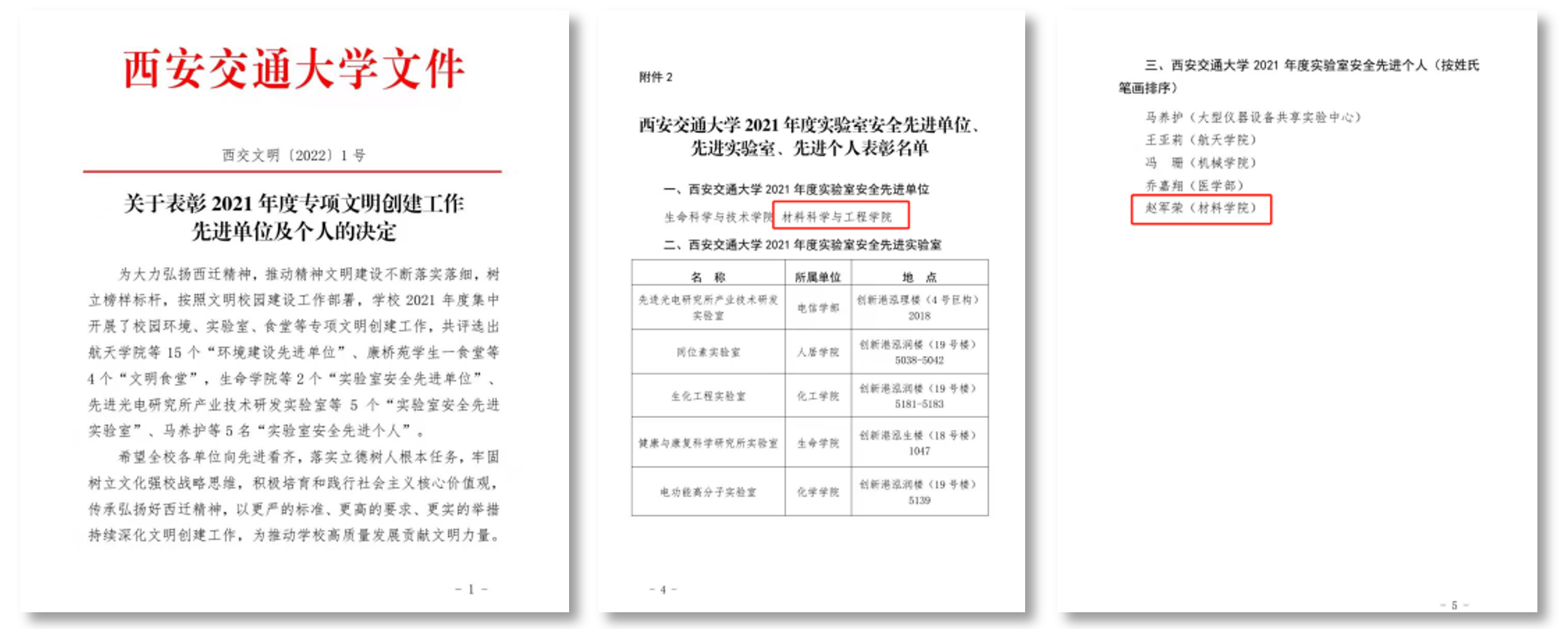 2021年度实验室安全先进单位(全校共2个),学院安全员赵军荣荣获实验室安全先进个人(全校共5人)。至此,一品探花