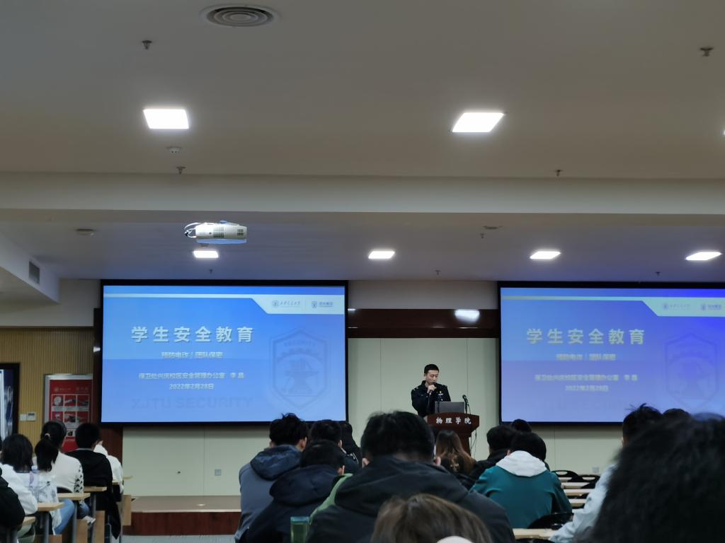 保卫处安全管理办公室李晶通过讲述实验室安全与信息安全的事例,向同学们强调了树立安全意识的重要性,呼吁同学们增强安全意识,小心个人信息泄露,遇到问题冷静思考,必要时及时联系保卫处寻求帮助。