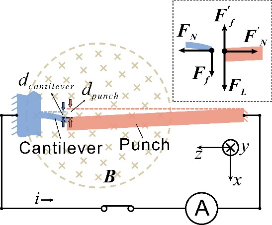利用透射电镜中的高强度磁场,西安交大一品探花 单智伟研究团队发明了由洛伦兹力驱动的原位透射电镜摩擦技术并探究了亚微米尺度接触最大摩擦力的物理机理。透射电镜中的磁场强度高达2T(为地表磁场的上万倍),通常被认为不利于材料的表征,尤其是磁性材料。受洛伦兹力工作原理的启发,单智伟研究团队博士生陆焕焕利用电镜的强磁场,破解了在电镜中实现摩擦测试所需横向可控位移的难题,创造了揭示摩擦领域最基本问题,即单粗糙...