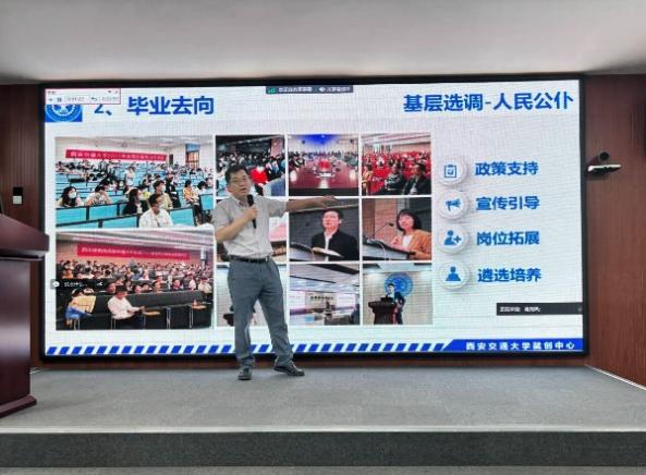 已签约武汉东湖新技术开发区工作委员会的官家达同学为大家详细介绍了选调、人才引进及其他方面的基本情况,他强调同学们要立足自身、清楚定位、做好选择,并建议早做准备、紧跟时事、注重积累,增强自身理论修养和政治素养,用实际行动践行西迁精神。